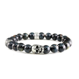 Skull Armband Blau Tigerauge